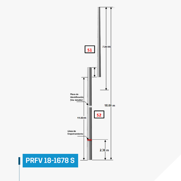 FRP Pole 16 m 1678 kgf sectioned or better called FRP‑18‑1678 S‑CTC of polyester reinforced with fiberglass.