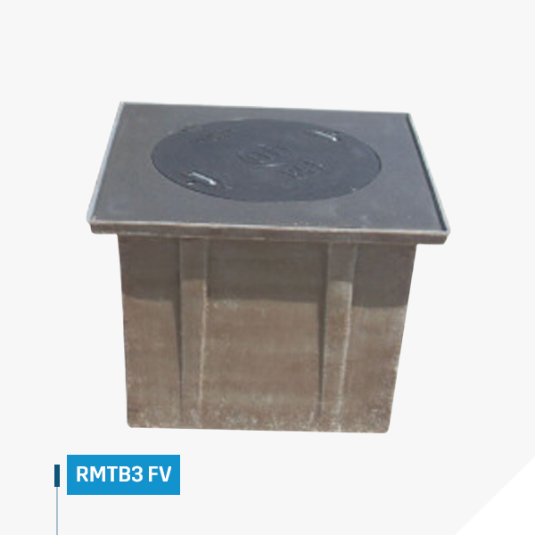 Registro para media tensión en banqueta tipo 3 en fibra de vidrio o mejor llamado RMTB3 FV con marco del mismo material reforzado y tapa 84-B y losa poliméricas. Fabricado según norma CFE RMTB-3.