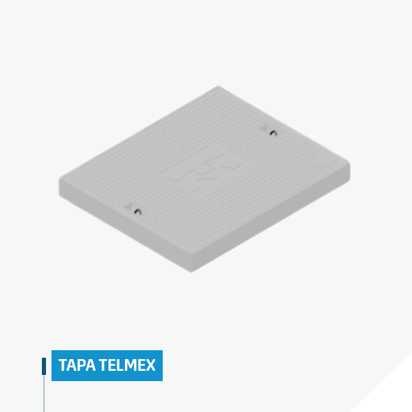Tapa para registros “TELMEX” o mejor llamado TAPA TELMEX de poliester reforzado con fibra de vidrio (PRFV) con tapa de concreto polimérico reforzada con fibra de vidrio, de 50 cm x 60 cm para registros “TELMEX”.